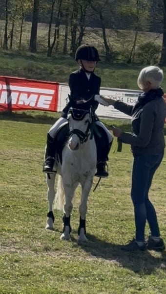 Zum Verkauf steht ein bezaubernder 7-jähriger Welsh-Pony Wallach, ca. 125 cm groß, Schimmel – ein echter Hingucker und dazu ein absoluter Allrounder! Ein tolles Kinderpony, das seinen Reiter liebt und viel Freude schenkt. Er ist überwiegend gemütlich unterwegs und absolut brav – dennoch ist er ein Pony und er testet manchmal, ob man es wirklich ernst meint, wird dabei aber nie böse. Ein typischer Ponydickkopf eben, beo konsequentem Umgang ist er ein echter Schatz und ein zuverlässiger Partner. Bei uns wurde er vielseitig gefördert: Dressur, Springen und Geländespringen Turniererfahrung in allen drei Sparten und auch im Führzügelwettbewerb, da ist er auch mit Kostüm super brav und entspannt. Auch beim Reiten ohne Sattel ist er brav – perfekt zum „Rumgammeln“ und Spaßhaben. Zum Ausgleich und zur weiteren Ausbildung gut an der Doppellonge gearbeitet. Anhängerfahren absolut unproblematisch. Keine ponytypischen Krankheiten wie Rehe oder Ähnliches. Aktuell nicht richtig im Training, da das Kind leider die Lust verloren hat, das ist auch der Grund für den Verkauf. Probereiten ist jederzeit möglich. Kontakt & Videos Verkauf im Auftrag Video und weitere Infos unter: 0172 4656337 Ein rundum tolles Kinderpony, das sich einen neuen Lieblingsmenschen wünscht!