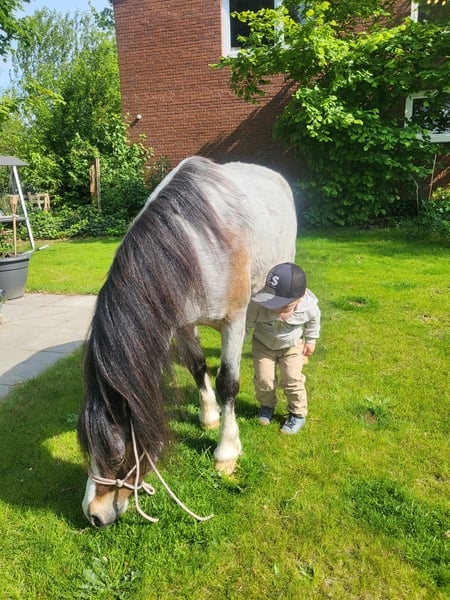 Silver is looking for a 5-star home. Silver is a super children's pony. I have trained him with a lot of love for 3 years. Silver walks alongside the smallest children like a Chihuahua. When the children stop, he stops too. When riding alone in the arena, he is always well-behaved and 100% reliable. He can be led as a hand pony, whether with a bicycle or another horse in heavy traffic or through the woods. Children who can ride alone follow independently. Always well-behaved and reliable. He jumps safely and reliably with ability. He is also broke to drive, but I don’t drive him due to lack of time. I regularly drag my riding arena with him. Children quickly build trust in Silver. Silver stays alone without any problems when I am out with the other horses. I can also let him graze in the garden. He has even stood in the living room during parties with loud music and thinks that's cool (there's a horse in the hallway). He loads onto the trailer by himself. Always healthy. I am selling him because my riding children are slowly growing too big, and I still have 2 horses. My grandchild lives far away and already has a pony. So, this is a great opportunity to acquire a well-trained children's pony. For questions and more photos, please feel free to contact me.