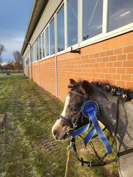 Silver sucht ein 5 Sterne zuhause. Silver ist ein super Kinderpony. Ich habe Ihn 3 Jahre mit viel Liebe ausgebildet. Silver geht mit kleinsten Kindern wie ein Chihuahuas bei Fuß. Wenn die Kinder stehen bleiben er auch. Beim reiten alleine auf dem Platz immer artig und 100% zuverlässig. Geht als Handpony, ob mit Fahrad oder Pferd im dicksten Verkehr oder durch den Wald. Kinder die alleine reiten können, reiten selbstständig hinterher. Immer artig und zuverlässig. Springt sicher und zuverlässig mit Vermögen. Eingefahren ist er auch. Fahre aus Zeitmangel nicht. Schleppe regelmäßig meinen Reitplatz mit Ihm. Kinder fassen schnell Vertrauen zu Silver. Silver bleibt ohne Probleme alleine, wenn ich mit den anderen Pferden unterwegs bin. Auch im Garten kann ich Ihn grasen lassen. Bei Partys stand er auch schon im Wohnzimmer bei lauter Musik und findet das cool.( da steht ein Pferd auf dem Flur) Verladen, geht alleine rauf. Immer Gesund. Ich verkaufe Ihn, da meine Reitkinder langsam zu groß werden und ich noch 2 Pferde habe. Mein Enkelkind wohnt weit weg und hat schon ein Pony. Also eine super Gelegenheit auf ein toll ausgebildetes Kinderpony. Die Papiere finden Sie unter Dokumente. Mit gesamten Zubehör 2 Sättel, Trense, Geschirr usw. Silver war jetzt aktuell auf Turnier und hat auf Anhieb den 4. Platz belegt im Caprillitest und war super lieb Bei Fragen und weiteren Fotos kontaktieren Sie mich gerne.