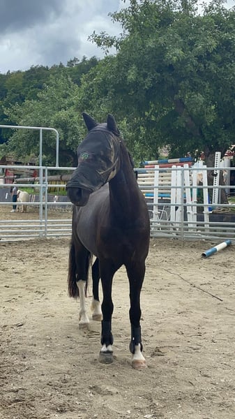 Goofy ist ein 2019 geborener Welsh-Mix-Ponywallach mit ca. 1,37 m Stockmaß. Er ist brav im Umgang, unkompliziert im Alltag und gut verträglich mit anderen Pferden. Beim Reiten zeigt sich Goofy lieb und zuverlässig – egal ob im Gelände, auf dem Platz oder beim Springen. Er ist motiviert, nervenstark und gibt seinem Reiter ein sicheres Gefühl. Ein tolles Pony für Kinder, Jugendliche oder den Freizeitbereich, das vielseitig einsetzbar ist.