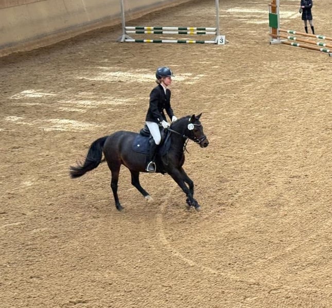 Welsh B mare, 11 years old, 13.3 hh – sporty children's pony with heart and power We are offering our reliable and talented Welsh B mare, who competed in riding school operations last year. She shows great enthusiasm and motivation especially in jumping – a true little sport pony that loves to work. She is a friendly, fearless pony that does not spook, buck, or shy away, and always strives to please her rider. At the same time, she is quick and has her own forward drive – therefore, she is not suitable for beginners but ideal for experienced children or light junior riders who are already secure in the saddle and enjoy a lively pony. She has also competed in shows and behaved well, always eager and cooperative. Suitable as: - Leisure and competition pony - For capable children and young riders - Max. rider height: 5'3" (1.60 m) - Max. rider weight: 99 lbs (45 kg) - Barefoot - Easy to load A pony that enjoys jumping, hacking, and varied work. Perfect for families, ambitious young riders, or riding schools seeking a sporty, reliable pony – but not for absolute beginners, as she can sometimes be quick. For inquiries, please contact Tel. 015253573292 Videos available on request