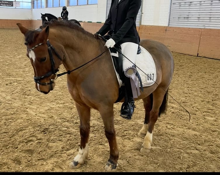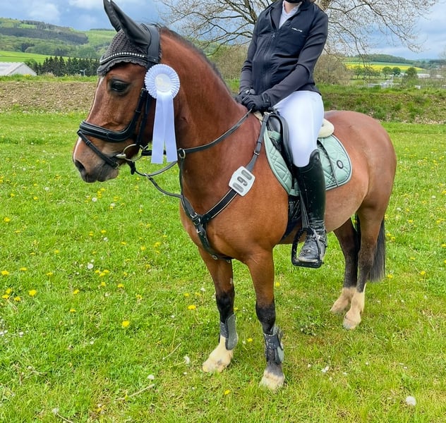 Unsere wunderschöne 16 jährige, 1,36m große Stute ist ein zuverlässiges Kinderpony. Ob im Gelände, im See oder auf dem Turnier. Sie ist mit und ohne Ausbinder problemlos zu reiten. Diese tolle Stute hat unsere Tochter von den ersten Schritt Trab Prüfungen bis hin zur E Dressur und E Springen getragen. Sie kennt Auswärtstraining und verladen und ist dabei immer zuverlässig und absolut artig. Sie bringt Kinderaugen zum Strahlen und deshalb haben wir uns entschieden, dass sie noch ein Kind so glücklich machen darf wie unsere Tochter. Mit einem Herz aus Gold tut sie alles für ihren Reiter. Sie ist seit 9 Jahren in unserem Besitz und war noch nie krank. Die Stute ist vorne Beschlagen und ist beim Hufschmied natürlich auch super brav. Das Zubehör kann bei Bedarf mit erworben werden. Wir haben einen Jugend Dressur- und Springsattel für die Stute. Nur in allerbeste Hände abzugeben. Sie steht bei uns in Stutengesellschaft täglich auf der Wiese. Täglicher Weidegang ist für uns eine Bedingung. Sie ist bestens geeignet für den Einsatz im Sport- und Freizeitbereich. Bei Interesse stehe ich Ihnen gerne für weitere Informationen und eine Besichtigung zur Verfügung.