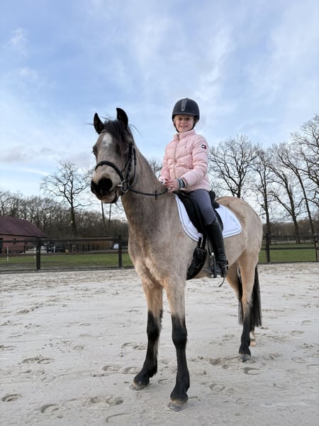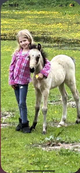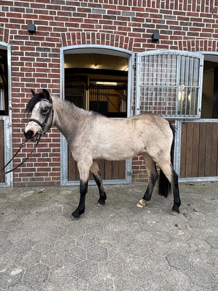 Diese charmante Falbstute besticht durch ihre freundliche Ausstrahlung und ihr angenehmes Wesen. Sie ist bei uns geboren, und mit Kinder, anderen Ponys und viel liebe aufgewachsen. Sie kennt absolut alles, ist freundlich, neugierig, und ruhig. Mit einem Stockmaß in moment von 131 cm, und noch überbaut, wird sie geschätzt bei 135 fertig sein. Sie ist nur wenige Mal unter Sattel, aber direkt willig, und unkompliziert. Sie ist gesund, gut sozialisiert und wurde bereits liebevoll an den Umgang gewöhnt. Aufgrund ihres jungen Alters bietet sie eine hervorragende Gelegenheit, sie individuell nach den eigenen Vorstellungen aufzuziehen und zu fördern. Ob für den Freizeitsport, die Zucht oder als zukünftiges Familienpferd – diese Welsh-B Stute überzeugt durch ihre Qualität und ihr freundliches Wesen. Platz vor Preis! Kein Schulbetriebe bitte! Bei Interesse stehe ich gerne für weitere Informationen und eine Besichtigung zur Verfügung.