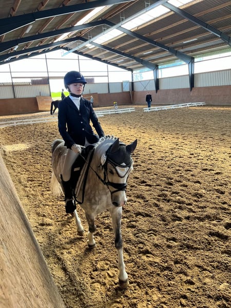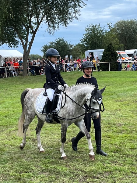 We are looking for a new 5* home for our wonderful Welsh-B gelding, as my daughter has unfortunately outgrown him. He has been with us for 4.5 years and has achieved numerous successes with my daughter (winning A-level dressage and placing highly multiple times, many placements in E-level, including 2nd place in the U14 Dressage Cup final). They were also regional champions in the U12 tetrathlon together. He is very well trained and already masters L-level dressage movements. There are very few ponies of his size that possess this level of training (and Rimondo points). Our pony also jumps very well; he enjoys pole and cavaletti work. He goes out alone and in groups on trails and has no bad habits like bucking or rearing. Overnight tournaments, clinics, and vacations are all no problem with him; we have done this often. He loads easily and is child-friendly, behaves well with the farrier and veterinarian. He is an absolute treasure to handle; even the smallest children can lead him alone, and he doesn't pull for grass, etc. He is very sweet and patient when being groomed. When riding, we are looking for a child who can ride confidently alone in the basic gaits, not complete beginners. If someone rides along, that would certainly be fine as well. He goes well on the lunge (he also knows double lunging very well) and with side reins. He has also been successful in the lead rein class with a little girl. He is our absolute heart pony, and selling him is not easy for us; he will only go to a very good home. We look forward to your inquiry!