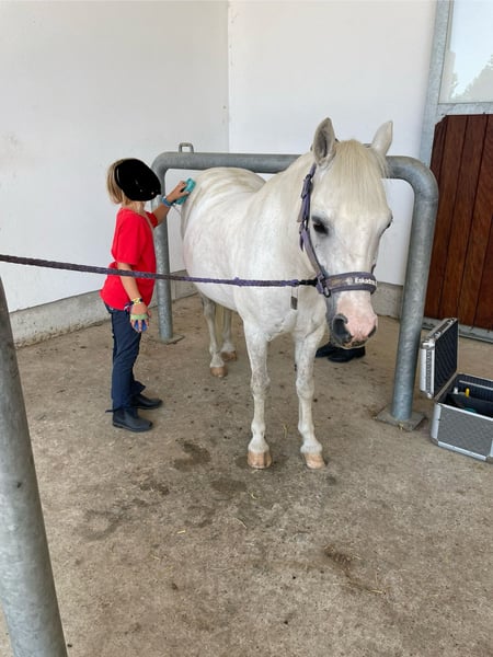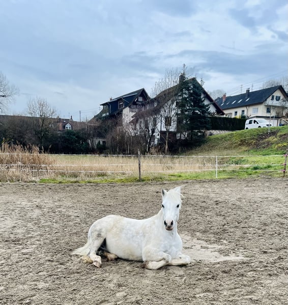 Zum Verkauf steht ein 1,30m grosses Schimmelpony, Wallach, FN-eingetragen und voll geimpft (Influenza & Herpes). 13 Jahre alt. Vorne beschlagen, hinten barhuf, gesund und regelmäßig gearbeitet. Er geht solides E-Niveau, hat Turniererfahrung und wurde beim Vorbesitzer bereits von einem 9-jährigen Kind geritten. Er ist kein reines Anfängerpony – in Verbindung mit einem Erwachsenen aber ein tolles Kinderpony. Er ist sehr ehrlich und leistungsbereit. Auch für kleinere Erwachsene sehr gut geeignet. Ich selbst bin 1,62m. Er ist brav in der Halle, auf dem Platz und im Gelände. Alleine im Gelände ist er manchmal unsicher, hier fehlt ihm noch Routine. Dann braucht er einen ruhigen, sicheren Reiter, der ihm Führung gibt. Im Umgang absolut brav, sehr menschenbezogen und sozial. Steht aktuell mit einem Wallach zusammen, rangniedrig und unkompliziert, er ist aber auch gut verträglich mit Stuten. Er kennt Box mit Paddock ebenso wie Offenstall, 24/7 Heu mit Netz und regelmäßigen Weidegang. Macht Bodenarbeit gerne, ist schlau und lernt schnell – abwechslungsreiche Arbeit liegt ihm definitiv. Ich könnte mir gut vorstellen, dass er an Zirkustricks große Freude hat. Brav beim Schmied, Hänger fahren kennt er auch. Kein Notverkauf. AKU ohne Befund vom September ‘25 liegt vor. Trense, diverse Stallhalfter und einige Decken sowie Schabracken sind inklusive. Um Reittourismus zu vermeiden, verlange ich 30€ fürs Probereiten, die bei einem Kauf verrechnet werden. Weitere Infos und Videos auf Anfrage.