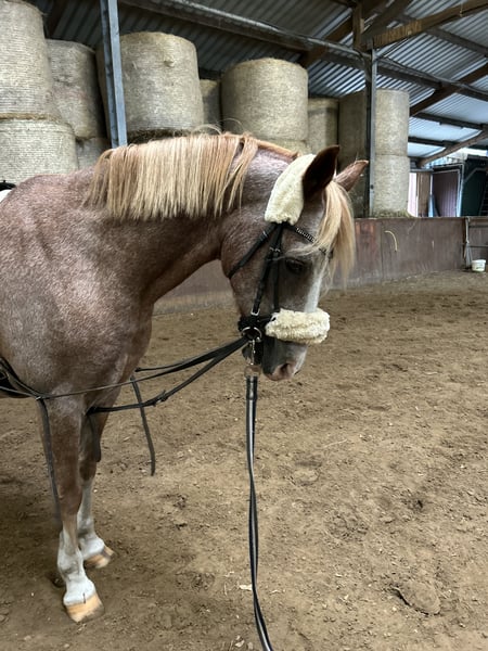 With a heavy heart, I have to sell my Welsh B gelding. He is 14.1 hands tall and 19 years old. As he is my heart pony, I am only offering him to the very best hands and with a secure placement guarantee! He is an all-rounder, very well-behaved in handling, excels in dressage, and also jumps. In the field, he is fearless. However, he should only be galloped there by experienced riders, as he tends to get quick. He can perform a flying lead change on command, along with many other tricks. He is compatible with all horses, regularly seen by the farrier and the veterinarian. He wears front shoes due to a crack in his pedal bone two years ago; he generally feels stiff on hard ground without shoes. Due to a lack of back muscle tone, he can no longer carry much weight. Current bloodwork is excellent, and he is otherwise healthy: no asthma, no laminitis, etc. No riding schools, only private individuals. Feel free to contact me with any questions.