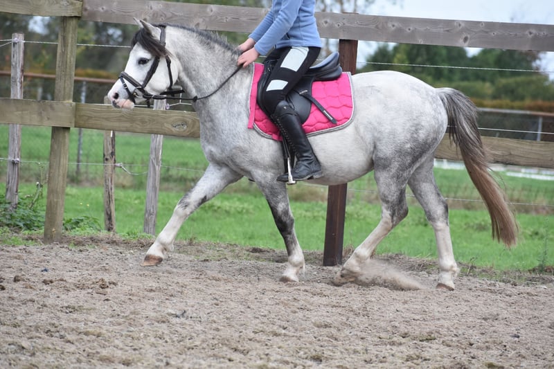 Cuppers Winston ist der Name dieses fast vierjährigen Hengsts! Sein Rufname ist Blue Boy. Er trägt eine wunderschöne, blaue Apfelschimmel-Farbe. Er besitzt eine fantastische, beeindruckende Abstammung: Hier klicken für seine Papiere: Eindegooi’s Pretty Charmer x #Oldenzijlster Action Man x #Vechtzicht’s Cymro Bach. Er hat eine prächtige, vollgebaute und dennoch elegante Konstitution. Ein Kopf, der direkt aus einem Disney-Film stammen könnte. Und sein Gangwerk ist spektakulär! Mit Blue Boy wurde bereits viel Bodenarbeit gemacht, und er ist sowohl hier als auch zuvor stets superbrav im Umgang, in der Trailer, auf dem Paddock und in der Weide. Winston ist momentan ein Wallach, aber als Hengst war er bereits äußerst brav. Er wächst nun in die Höhe und ist eine große B-Maße. Er ist ein unglaublich kooperativer, superlieber Wallach. Er findet das Reiten sehr angenehm und möchte gerne weiter wachsen: Für die Freizeitreiterei ist er hier bereits brav genug, aber auch als Sportpony ist er bestens geeignet. Wir erwarten, dass er sehr leicht zu erlernen ist, zum Kutschieren – das wird bestimmt ein wunderschönes Bild! Er liebt das Reiten sehr und ist von Anfang an brav mit dabei gewesen; wir konnten sofort ohne Probleme auf ihn aufsteigen. Preis: 4.750 € inklusive Marken-Sattel und Abschwitzdecke