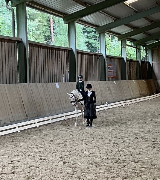 **Sales Advertisement: Dreamy Welsh-B Gelding for Sale** We offer a beautiful Welsh-B gelding for sale. **Features:** - **Breed:** Welsh-B - **Gender:** Gelding - **Year of Birth:** 2019 - **Color:** Cremello - **Height:** 135 cm - **Discipline:** Dressage This charming gelding impresses not only with his striking color but also with his friendly temperament and willingness to learn. He is well-behaved at competitions and can be easily handled by children there. He is familiar with Christmas riding, has participated in various children's events, and is well-behaved for beginners on the lunge.