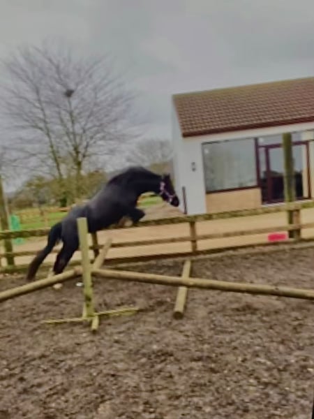 Llafar Rock-Queen Welsh Sec C Stute Zum Verkauf, da sie leider zu groß geworden ist. Wir hatten das Vergnügen, sie seit dem Absetzen zu begleiten, und sie ist zu schade, um in einem Feld ohne Aufgabe zu verkommen. Vater – Llanidan Simwnt (Parvadean Gold Top x Penchwintan Perl) Mutter – Llafar Rock-Chick (Gwenllan Bossy x Llafar Rhapsody Ddu) Vollblutlinie mit traditionellem Zuchtstamm. Von Jennifer Dart vom Llafar Stud gezielt auf Qualität statt Quantität gezogen. Absolut kinderlieb. Perfekt als Zweit-Pony zum Reiten. Sie wird in jeder Disziplin, die ihr Reiter wählt, glänzen. Ebenfalls geeignet als Pony für Fahrten und Kutschfahrten. Sie wurde im Sommer leicht vorgestellt und erreichte in starken Klassen jeweils Platz 2 und 3. Rock-Queen wurde kürzlich eingeritten und ist jetzt reitbar. Bitte beachten Sie, dass sie noch grün ist und manchmal etwas scharf sein kann. Sowohl Kinder als auch Erwachsene können sie schulen. Sie kann mit Sattel und Zaumzeug auf der Lunge gearbeitet werden, mit Halfter oder frei geritten. Sie springt jetzt auch frei im Gelände. Da sie noch nie unter dem Reiter gesprungen ist, hat sie sehr wenig Erfahrung im Springen. Sie wurde longiert, daher kann sie auch für das Fahren ausgebildet werden. Sie hat auch mit Freiheitsdressur begonnen und genießt es, sobald sie weiß, was sie tun soll. Sie lernt schnell und nimmt ihre Lektionen gut auf. Das Bild mit dem Mädchen wurde fünf Minuten nach dem Einreiten gemacht! Seitdem hilft sie einem anderen Mädchen beim Reiten und beim „Rund um die Welt“-Reiten. Llafar Rock-Queen ist aktuell bei Zahnkontrolle, Impfungen, Wurmkuren und Hufpflege. Sie ist barhuf, da sie nie Hufeisen gebraucht hat. Sie hat ein Bein in jeder Ecke und wurde perfekt im „Purple“ gezogen. Llafar Rock-Queen besitzt einen grünen Pass und ist microchipped. Dieses kleine Mädchen sprüht vor walisischem Charme und hat eine freche „Schau-mal-ich-bin“-Attitüde! Sie wird für jemanden viel Freude bereiten. Gleichzeitig steht sie ruhig, wenn sie gebürstet oder gebadet wird. Die letzten Bilder zeigen sie mit ihrer Mutter und ihrem Hengst. Das allerletzte Bild zeigt ihre Mutter und Großmutter bei der Royal Welsh Show. Sie wird mit ihrer Garderobe und Trense geliefert. Wenn Sie weitere Bilder oder Videos wünschen oder Fragen zu ihr haben, nehmen Sie bitte Kontakt mit mir auf. Schreiben Sie mir eine SMS, ich melde mich zurück, da ich nicht immer ans Telefon gehe. Ponys dieser Qualität sind nicht allzu häufig zu sehen. Schauen Sie auf YouTube unter ihrem Namen oder @Weenie-10 für mehr Videos ihrer Arbeit.