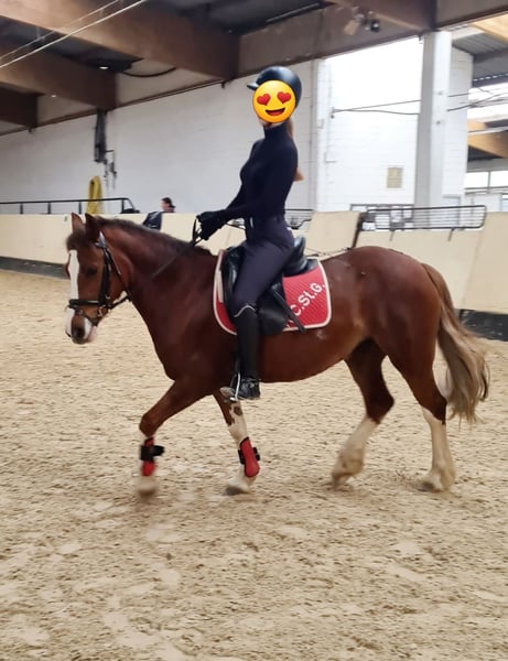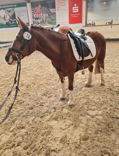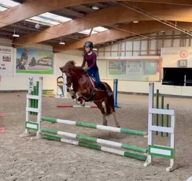 Unsere Seley möchte gerne eine feste Bezugsperson (keine kleinen Kinder) und am liebsten nur springen und ins Gelände reiten (Dressur muss zwar auch ab und zu sein, sagt sie, findet sie aber eher doof). Deckt super gut auch schmale Erwachsene bis 1,70 ab. Springt für ihr Leben gerne, ist eine absolute Lebensversicherung im Gelände. Bestimmt auch tolles VS-Pony. In der Dressur eher triebig und nicht sehr motiviert, dennoch auch schon Dressurreiterwettbewerbe mit 7er Noten bestritten und etliche Kinder durch Reitabzeichen getragen. Dennoch kein reines Kinderpony, da triebig und zickig/stutig im Umgang. In der Herde eher rangniedrig. War nie lahm o.ä. Probereiten gegen eine Gebühr von 30 Euro möglich.
