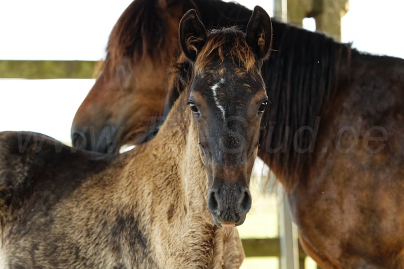 Hübsches Stutfohlen mit guten Bewegungen, zuchtbewährter Abstammung und vier gleichmäßig weißen Söckchen, die sich von der fast schwarzen Grundfarbe wunderbar abheben. Die Kleine ist menschenbezogen und zutraulich und liebt es gestreichelt zu werden. Sie hat ein kräftiges Fundament und Exterieur. Deshalb wird sie sich später auch von Erwachsenen reiten lassen und verspricht somit nach entsprechender Ausbildung ein Allrounder für die ganze Familie zu werden.
