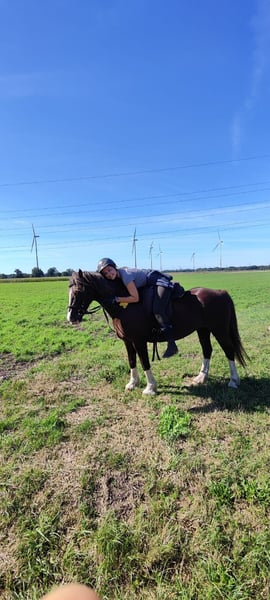 For sale is a beautiful Welsh-C gelding, born in 2013. This dark chestnut impresses with his friendly nature and versatile suitability for various disciplines. He is ideal for leisure riding and is suitable for both experienced riders and re-entrants. However, he is not yet suitable as a beginner pony. Currently, he still needs more experienced riders to bring out his best. The gelding is healthy and regularly dewormed. He is well-suited for riding in the terrain and also performs well on the arena. His pleasant demeanor makes him a reliable companion for leisure riding. He loves attention from his rider and enjoys being pampered. This horse simply has character :-). This is not a distressed sale. We are reducing our herd and have the time and interest to sell Erich into the best hands. He is not suitable (yet) as a pony for small children (unless led). Erich is also not a weight carrier, but riders up to 1.70 m and 70 kg are well covered. He can, of course, be viewed and test ridden at our facility. We would like to meet the new owners personally; a visit and trial ride are not only welcome but expected. If interested or for further information, please feel free to contact me. Viewing and test riding by appointment.