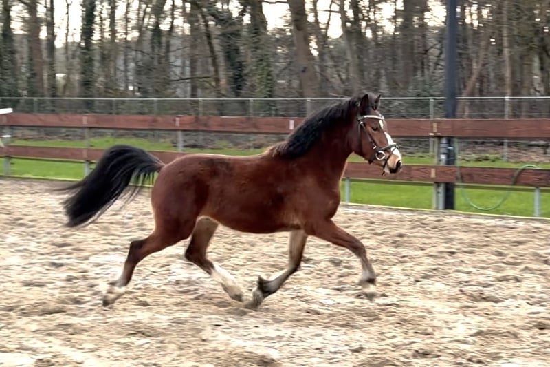 Nieuw huisje gezocht! Super brave pony! Ontzettend lieve en super brave 3 jarige C-pony Welsh ruin. Hij meet 1.30m en zal naar verwachting uitgroeien rond de 1.34m, gezien zijn leeftijd en hij nog wat overbouwd is. Zijn afstamming is: Willow Constantine x New Challenge’s Braveheart x Ridgehill Rhydian. Hij heeft hele goede gangen! Op de foto’s en filmpje lieten we hem voor de aller eerste keer los springen. Hij deed dit ontzettend goed en vond het ook leuk om te doen en toonde hierbij een hele goede achterhand. Ondanks zijn jonge leeftijd is hij echt super braaf! Hij heeft al wel een paar keer een stapritje aan de hand gedaan met een klein kindje op zijn rug, maar is verder nog onbeleerd. Hij kent dus wel al een zadeltje. Hij is heel makkelijk in de omgang, staat netjes stil tijdens het poetsen, kent het halster op en af doen, een dekentje en loopt dus ook braaf mee aan een touwtje. Hij komt meteen naar je toe in de wei en is ook heel sociaal naar andere paarden. Hij is ook braaf op de trailer! Hij heeft geen (stal)gebreken! Leuke kans voor iemand die een toekomstige sport- en kinderpony zoekt! Ook interessant voor de wagen in de mensport! Vaste prijs € 2250
