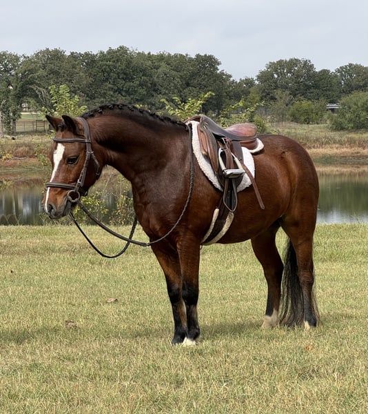 🎁 𝐈𝐍 𝐓𝐈𝐌𝐄 𝐅𝐎𝐑 𝑪𝒉𝒓𝒊𝒔𝒕𝒎𝒂𝒔 🎁 Happening now thru TUESDAY | DECEMBER 9th - Available EXCLUSIVELY on Ponybid's website! For more details and to register visit: www.Ponybid.com CONSIGNOR CONTACT: Ponies & Ponytails 727-741-0559 LOCATION: Cleburne, TX BREED: Welsh REGISTERED: No COLOR: Bay HEIGHT: 11 AGE: 6 GENDER: Gelding Super fancy small welsh gelding that will do it all!! Waylon is a 6yr old 11h bay welsh gelding that the kiddos will absolutely love!! This little man has been raised the right way!! He’s been brought up with a wonderful family trail riding and sight seeing. He’s no stranger to the outdoors and he loves going new places. Goes anywhere you point him on the trails and he will pony from the big horses. Waylon is also a great arena pony! He will ride English or western and go over the jumps! He’s got the most perfect little knees and he’s starting his flying changes!! He’s got the makings of being a very fancy hunter type pony!! Very in your pocket, very friendly pony that loves attention. Loads and hauls great. Easy keeper and UTD on everything!! BAD HABITS/VICES: Absolutely no bad habits or vices. Waylon has no buck, bite, bolt, kick or rear! CHRISTMAS BOARDING AVAILABLE!! We are offering boarding until Christmas time to really surprise the kiddos!! If you need a place to stash the new stocking stuffer we can certainly make that happen!