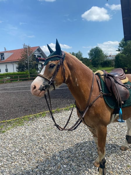 Only in the best hands and under proper, species-appropriate care would we consider rehoming our absolutely charming and beautiful Welsh C gelding, Popcorn. He stands at 132 cm, is 7 years old, and in top condition. He has completed A-level dressage and E-level jumping, with his potential especially in dressage still far from fully realized. Beautiful and easy to ride (very light in the contact), with excellent basic gaits. He is absolutely lovable, very well-behaved, and has already carried children through riding badges and participated in his first competitions. He is very well-behaved both in the field and on unfamiliar grounds. He also jumps very nicely and is diligent when lunged. He is shoe- and load-trainable and has played the Saint Martin's pony every year so far. His hooves are in excellent condition, and he is barefoot without any issues. Since he was 2.5 years old, he has been kept in a pasture with us, has never been lame or had any health problems, and is on pasture year-round (no risk of laminitis). Poppy is only being rehomed due to personal reasons and with a very heavy heart. He is a pony that parents consider a winning lottery ticket for their child. An ambitious girl can go very far with him! Dealers or riding schools need not apply! Priority is given to the well-being of the horse over price! Accessories can be included. He does have a small cosmetic flaw: unfortunately, he has no tail. Price negotiable upon request. Please contact me by phone if interested: 0160-3608584. Videos can also be sent upon request.