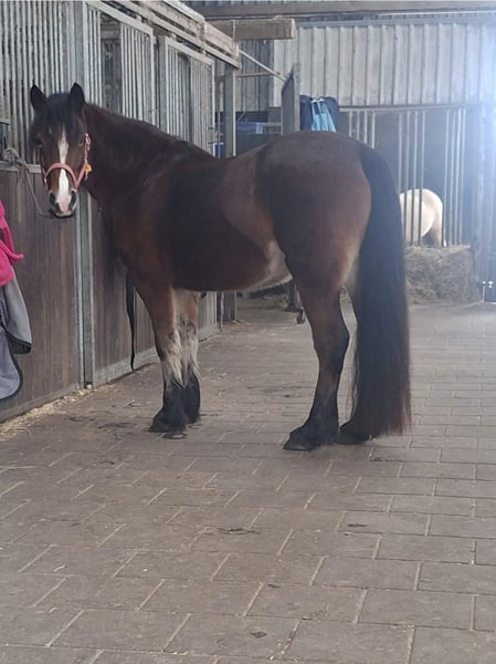 11 jährige Welsh Cob Stute sucht neuen Wirkungskreis Aufgrund von Bestandsverkleinerung sucht diese wunderschöne, 11 jähre Welsh Cob Stute mit einem Maß von 1,44m einen neuen Wirkungskreis. Sie war bisher in der Zucht , hat 5 wunderschöne Fohlen zur Welt gebracht und ist stets im Herdenverband gehalten worden . Das kleine 1x1 der Bodenarbeit ist ihr bekannt und zeigt sich hier sehr unerschrocken ( Plane , Stangen , Dualgassen ) . Sie zeigt sich ihrem Menschen zugewandt, benötigt jedoch einen Menschen mit ausreichend Pferdeverstand ( ist dem Menschen gegenüber aber nie böse ) . Hat man einmal ihr Vertrauen gewonnen, wird sie ihren Menschen nicht enttäuschen. Auch ist sie als späteres Reitpferd im Freizeitbereich denkbar, hier jedoch roh und absolut unverbraucht. Ihre Zähne wurden im Oktober 2025 kontrolliert und bearbeitet , ist grundimmunisiert und die letzte Wurmkur wurde am 5.12. verabreicht ( Wirkstoff Ivermectin ) . Wir wünschen und für diese tolle Stute einen Menschen der ihr Anfangs etwas Zeit gibt und ihr ein artgerechtes, neues zu Hause schenkt . Zu besichtigen ist sie aktuell in 26849 , weitere jungpferde aus unserer Zucht können vor Ort auch unter dem Sattel oder an der Hand vorgestellt werden ( diese sind jedoch nicht für den Verkauf gedacht )