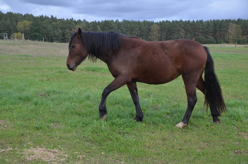 Kostal „Luna“ est née le 04.05.2022 dans notre écurie. Elle est issue du hongre Welsh D „Finkos Tywysog“ et de notre jument Kostal „Skyla“. Race : Welsh D Sexe : Jument Âge : 3 ans Couleur : Bai Utilisation : Loisirs, Élevage, Dressage Directement du éleveur Description : Luna est issue de notre propre élevage et grandit de manière appropriée avec d'autres yearlings et juments. Lors de la présentation des poulains en M-V, elle a été primée en tant que « Poulain Élite ». C'est une jeune jument sociable et désireuse de travailler. Elle connaît le transport en van et se comporte bien chez le maréchal-ferrant. Comme tous nos poneys, elle est pieds nus. Luna a une base solide et un mouvement impressionnant. Elle vit avec nous en troupeau, dans un abri ouvert avec un paddock attenant. De plus, elle a un bon contact avec les humains. Actuellement, elle mesure 1,41 m. Prix : 5000,00 euros Nous avons également d'autres poneys de différents âges à vendre.