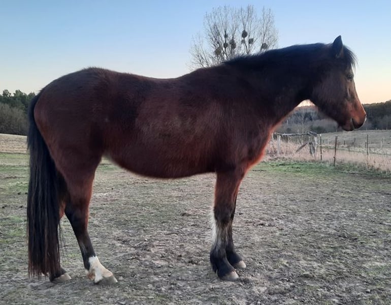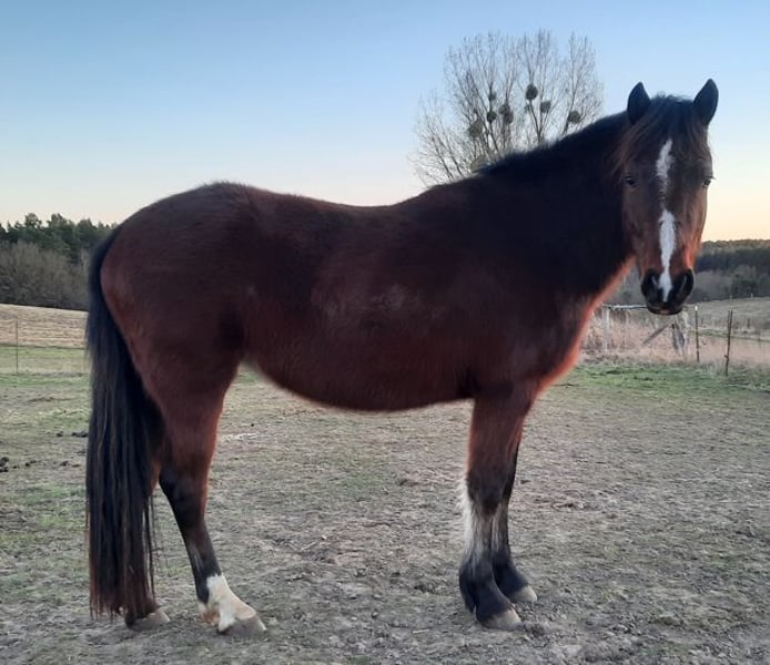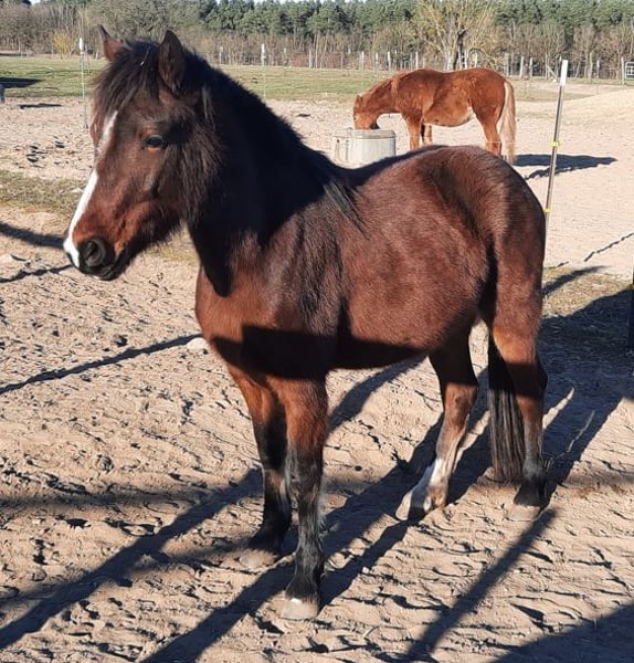 Kostal „Frieda“ est née le 26/05/2022 dans notre ferme. Elle est issue de l'étalon Welsh D „Finkos Tywysog“ et de notre jument Kostal „Brianna“. Frieda est de notre propre élevage et grandit de manière appropriée avec d'autres yearlings et juments. C'est une jeune jument sociable et volontaire. Elle est habituée à voyager en van et ne pose aucun problème chez le maréchal-ferrant. Comme tous nos poneys, elle est pieds nus. Frieda a une ossature solide et des mouvements impressionnants. Elle vit chez nous en troupeau, dans une écurie ouverte avec paddock attenant. De plus, elle a un bon contact avec les humains. Actuellement, elle mesure 1,35 m. Prix à débattre : 3000,00 euros Nous avons d'autres poneys de différents âges à vendre. Veuillez contacter l'éleveur Frank Päuser au 0176 87994320.