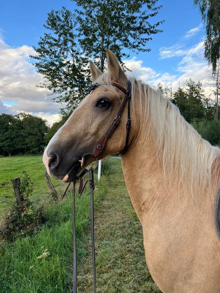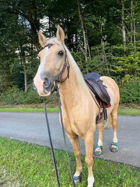 Verkaufe Welsh-D Wallach – Vielseitigkeitstalent in Palomino Zum Verkauf steht ein wunderschöner Welsh-D Wallach, geboren im Jahr 2016. Mit seinem eleganten Palomino-Fell und einem Stockmaß von 150 cm ist er ein echter Blickfang. Bendur kann vielseitig geritten werden , liebt am meisten jedoch den Ausflug ins Gelände. Hier zeigt er sich nervenstark , weder Traktor noch Mountainbiker erschrecken den hübschen Kerl. Trittsicher eignet er sich auch als Tourenpferd.Er lässt sich toll sitzen und ist jederzeit kontrollierbar. Auf dem Platz wird er aktuell von unten als auch oben gearbeitet. Er hat Talent im Sprung , wer da Spaß dran hat , könnte mit Bendur auf seine Kosten kommen. Jedoch wurde das bis auf den Einsatz in der Hengstleistungsprüfung nicht weiter verfolgt. Gelegt wurde Bendur erst mit 8 Jahren . Da meine Stute keine Lust hat mit ihm zu spielen , suche ich auf diesem Weg einen passenden Platz für den kleinen Mann . Er steht aktuell bei uns am Haus mit Freigang . Gerne würde ich Bendur in eine ähnliche Stall Situation geben. Eine Wallach Gruppe wäre wahrscheinlich am sinnvollsten. Weder ein Schulbetrieb noch Händler werden Bendur bekommen. Ich suche den passenden Menschen , der Bendur zu schätzen weiß. Es ist kein Not Verkauf sondern es steht im Vordergrund das es passt. Bendur ist kerngesund, Zähne wurden letztes Frühjahr gemacht und die Hufe alle 6 Wochen bearbeitet. Er ist brav beim putzen und er lässt sich gut verladen . Bei Interesse oder für weitere Informationen stehe ich gerne zur Verfügung.