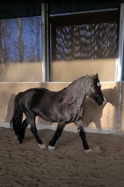 This beautiful Welsh D gelding (born in 2012, approximately 14.1 hh) is a true character horse: intelligent, proud, personable, and with a sensitive understanding of his environment. Not a horse for just "anyone," but for people with heart, feeling, and understanding of sensitive, honest horses. He enjoys working and particularly shows his great joy in communication with humans through horsemanship. Motivated, attentive, and eager to learn – once he has gained your trust, he will stand by his person through thick and thin. With us, he was mostly ridden bitless (with a rope halter, sidepull, hackamore, bosal). He is also familiar with a bit but requires a calm, delicate hand when ridden with one. He is extremely personable, coming directly to you in the paddock and enjoying closeness and affection very much. He is sensitive and refined – a horse that appreciates clear, loving leadership and forms a close bond with his handler. Health: He has always been reliably healthy with us. During a recent dental check, a change was found in his incisors, which has already been partially treated. A final procedure is still needed, after which the issue will be fully resolved. His molars are in excellent condition. He prefers to eat his hay without nets (though this could be reconsidered in the future), handles it wonderfully, and is not restricted in daily life or under saddle. More details are available in a personal conversation. Housing & Character: He has only known outdoor herd life and should continue to enjoy this environment. He is balanced and content in this setting. In the herd, he tends to be higher-ranking, social, fair, and very compatible. He has always been confident and friendly, getting along well in mixed groups. He is very good with children but is not suitable as a beginner’s horse. We can easily imagine him as a mother-child horse, as he forms strong bonds with his handler. He reliably covers mares but is not a weight carrier. Other: - barefoot - regularly vaccinated and dewormed - good with farrier work - loading onto trucks/transports is no problem; trailer training should be continued An absolutely lovable, honest, and willing pony in the prime of life and in optimal size – a true Welsh Cob through and through. Anyone familiar with this breed knows exactly what that means. Place before price: He is looking for a person who will give him time, attention, and trust. Someone who truly sees him. Not a sport horse for high demands, but a genuine friend and partner for shared journeys. For us, a suitable, loving home is more important than the sale price. We wish for people who appreciate his personality and can provide him with a stable, horse-friendly environment in the long term. If you feel you might be a good match, we would be very happy to hear from you and arrange a personal meeting. 🤍
