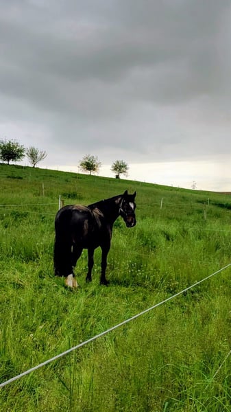 Silberberg Windsor, wird schweren Herzens aus Altersgründen der Halterin abgegeben. Windsor wurde 4-jährig leicht angeritten vom Züchter gekauft und befindet sich seitdem in unserem Besitz (11 Jahre). Rittigkeit & Charakter: Windsor ist absolut ehrlich und menschenbezogen. Er ist jedoch kein reines Anfängerpferd, da er eine weiche Hand und eine korrekten Führung braucht. Zudem beherrscht er erweiterte Lektionen (Seitengänge). Handling & Sicherheit: Angenehm und unkompliziert im täglichen Umgang. Schmied und Tierarzt sind absolut problemlos. Das Verladen ist unkompliziert. Im Gelände ist er sensibel und benötigt einen routinierten Reiter, der ihm Sicherheit vermittelt. Er ist dabei jedoch stets kontrollierbar und berechenbar. Haltung & Gesundheit: Steht seit 11 Jahren in einer Paddockbox mit vormittags Weidegang. Er wird mit Holzspänen eingestreut und erhält nasses Heu. Er hatte in langen, trockenen Perioden vereinzelt leichte, kurzzeitige Entzündungen der oberen Luftwege, die mit Hustenmitteln schnell behoben waren. In den letzten drei Jahren (feuchteres Klima) war er diesbezüglich praktisch unauffällig. Der Käufer sollte dies bei der Haltungsform berücksichtigen. Abgabe nur in gute und kompetente Hände. Der Verkauf erfolgt inklusive komplettem, hochwertigem Zubehör (u.a. Markensattel Euroriding Diamant)