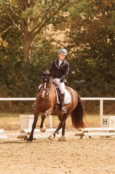 For sale is a stunning, sensitive Welsh Cob gelding in a beautiful chocolate color. With his charismatic presence, charm, and honest nature, he quickly captures everyone's attention. He is always straightforward in his dealings – no bucking, no rearing – and proves to be reliable and clear-headed both in daily training and in the field. He is well-behaved and uncomplicated when it comes to farrier visits and loading. He is accustomed to hacking both in a group and alone, enjoying both equally. Currently, we are working on dressage movements at L-level, with him being motivated and eager to learn. He is familiar with jumping up to E-height, although this has not been our main focus so far. He has experience with turnout and outdoor training, and last year, he gained his first competition experience, which he handled confidently. He currently lives in an open stable/activity yard, and we intend to keep it that way – this type of management suits him very well and aligns with his nature. He is not suitable for beginners or as a purely children's horse. Due to his sensitivity, we are looking for a confident, empathetic rider. A child could ride him in combination with an experienced adult. He is a sensitive horse with a big heart – those who earn his trust will find a reliable lifelong partner in him. Serious inquiries are welcome via personal message.