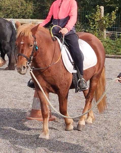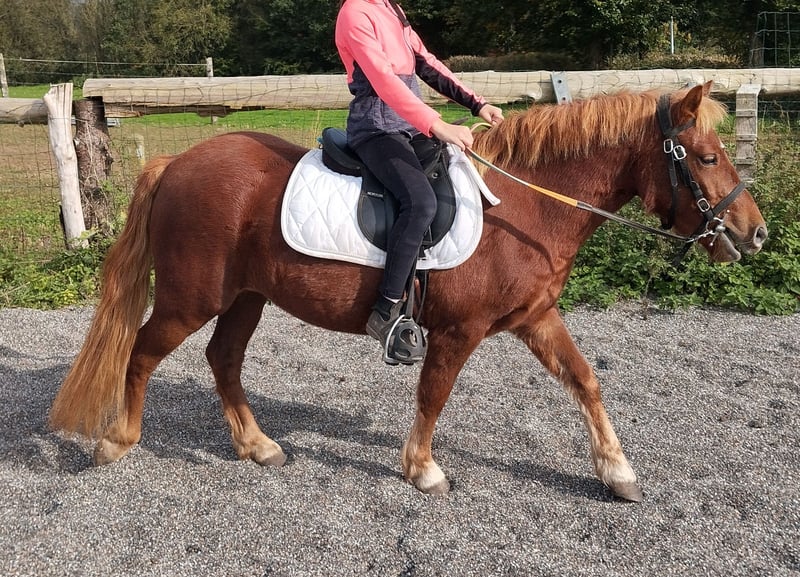 Pouliche welsh Part-bred qui prend 3 ans en 2026, alezan, fera environ 1.15m, manipuler, près- débourré, vacciné grippe tétanos et rhino