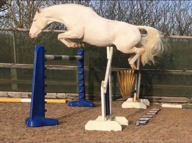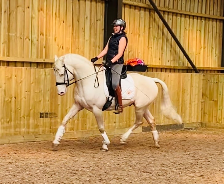 Hilkens All Cream AES Licensed,16h, 2012 Westphalian x TB Stallion. Daz is known for his versatility, superb offspring and unique colouring. He is sired by RFF The Alchemist (TB) and out of Hilkens Magic Gold. He is a balanced and uphill mover, displaying power, scope and intelligence. He is WFFS and PSSM1 Negative which is a significant factor for breeders and customers breeding programs. His offspring prove themselves in all ridden aspects and have been reportedly, very easy, intelligent, straight and sound. At home, Daz is a very easy and good do’er. He has no vices and is a lovely horse to be around/have on the yard. This sale is not just for a superb and popular stallion, but also the business he brings. He has many returning customers year after year and a good, healthy income. He covers both naturally and on the phantom mare for AI. Currently having down time after a busy season but he is a very easy and sensible horse to bring back into work.