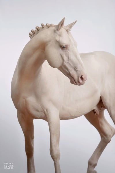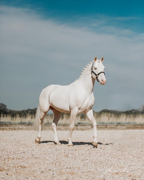Hilkens All Cream AES-lizenziert, 16.1 hh, 2012er Westfale x TB Hengst. Daz ist bekannt für seine Vielseitigkeit, hervorragende Nachkommen und sein einzigartiges Farbenspiel. Er ist Nachkomme von RFF The Alchemist (TB) und stammt ab von Hilkens Magic Gold. Er zeigt sich als ausgeglichener und aufwärtsbewegender Hengst, der Kraft, Springvermögen und Intelligenz vereint. Er ist WFFS- und PSSM1-negativ, was für Züchter und Kunden in Zuchtprogrammen ein bedeutender Vorteil ist. Seine Nachkommen beweisen sich in allen reiterlichen Disziplinen und sollen laut Berichten äußerst leicht, intelligent, gerade und gesund sein. Zu Hause ist Daz sehr unkompliziert und angenehm im Umgang. Er hat keine Macken und ist ein lieber Begleiter auf dem Hof. Der Verkauf betrifft nicht nur einen hervorragenden und beliebten Hengst, sondern auch die Geschäftsmöglichkeiten, die er bietet. Er gewinnt Jahr für Jahr treue Kunden und sorgt für ein solides, gesundes Einkommen. Er deckt sowohl natürlich als auch auf der Phantomstute für die künstliche Befruchtung. Nach einer ruhigen Phase nach einer intensiven Saison ist er sehr unkompliziert und vernünftig wieder in die Arbeit zu integrieren.