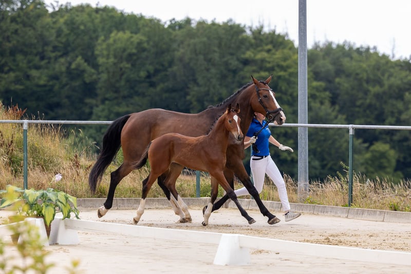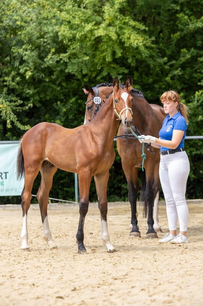 Zum Verkauf steht unser vielversprechender Jährlingshengst Ori King, der bereits als Fohlen mit der Goldprämie ausgezeichnet wurde. Er überzeugt mit ausdrucksstarken Bewegungen und einem korrekten Fundament. Seine hochinteressante Abstammung lässt auf ein leistungsbereites, vermögendes Sportpferd hoffen. Er wurde bisher liebevoll in einer Jungpferdeherde aufgezogen und ist dem Menschen sehr zugewandt und brav im Umgang. Da wir aus zeitlichen und betrieblichen Gründen nicht in der Lage sind den Weg bis zur HLP mit ihm zu gehen, suchen wir ein förderndes Zuhause.