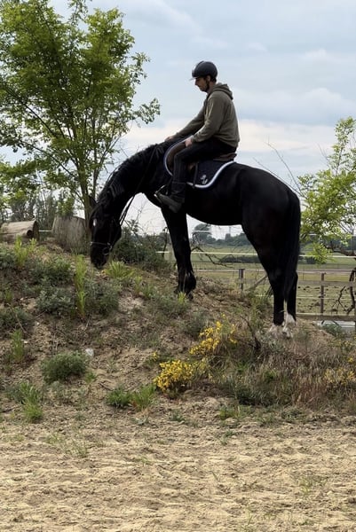 Na sprzedaż jest obiecujący, wysokiej jakości ogier w czarnej kurtce, pochodzący z bardzo udanej linii, urodzony 04/22. Został założony w siodło w połowie/końcem maja i już wykonał kilka skoków pod siodłem. TUV dostępny: bez zarzutu. Aktualny wzrost: około 1,70 m. Rodowód: Cornet de Semilly x Classe VDL x Lupicor x Cor de la Bryere. Ten niezwykle elegancki i typowy ogier ma wiele jakości ruchu i zdolności z niezwykłym sposobem skakania. Jest gwarancją i nadzieją na wielką trasę. W połowie/końcem marca: Mistrzostwa w skokach swobodnych. Sędziowie szczególnie chwalili jego ponadprzeciętne ruchy, spokój i opanowanie, które ze sobą wnosi, nie zapominając o jego zdolności do skakania. Zostało to bezpośrednio nagrodzone oceną 8,8.