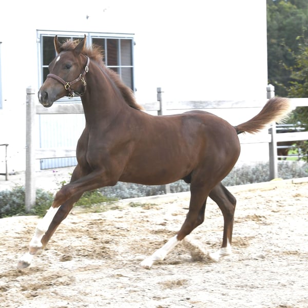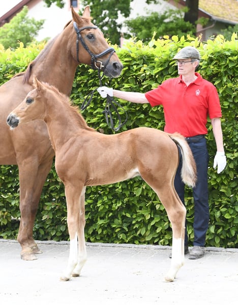 Ich biete an: hervorragendes Hengstfohlen vom Hannoveraner Champion San to Alati FRH aus einer Staatsprämienstute von Wolkentanz II. Er wurde geboren am 16. April 2025 und zeigte sich vom ersten Tag an besonders vital und mit drei überaus guten Grundgangarten ausgestattet! Zudem zeichnet eine besonders schöne Oberlinie sowie ein einwandfreies Fundament dieses Hengstfohlen aus. Das Fohlen wächst unter optimierten Haltungsbedingungen auf und wurde bereits tierärztlich untersucht. Die Untersuchung verlief ohne Beanstandungen (Attest anbei). Er wurde geimpft und entwurmt, ist charakterlich einwandfrei und stets gelehrig im Umgang. Das Hengstfohlen zeigt sich mittlerweile in Dunkelfuchsjacke Bei Bedarf ist ein Aufzuchtplatz für ihn reserviert . Falls Sie Interesse haben an diesem herausragenden Fohlen, so melden Sie sich gerne telefonisch unter +4915118240499 (abends ab 19 Uhr oder am Wochenende) oder per E- Mail unter: Fohleninserat@t-online.de (bitte keine SMS oder Whats App).
