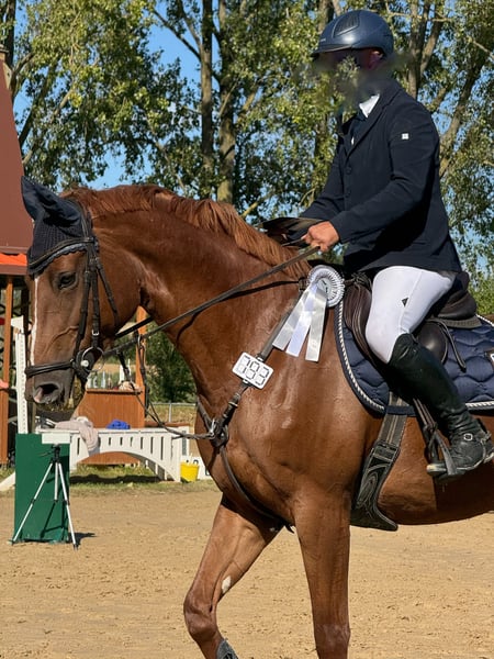 Bella ist eine 9-jährige Stute von Black Rock H x Caruso. Sie konnte sich in mehreren M-Springen platzieren, darunter auch M**. Sie will immer über jeden Sprung drüber und ist dabei sehr vorsichtig und bedacht, dass alles liegenbleibt. Bella ist kein Anfängerpferd und benötigt einen Reiter, der ihr klare Anweisungen geben und sie jederzeit gänzlich einrahmen kann. Man kann mit ihr jederzeit auf Turnier starten, sie ist da sehr routiniert und erfahren. Sie wurde regelmäßig geimpft, chiropraktisch und zahnärztlich behandelt. Außerdem ist sie schmiede- und verladefromm. Wir wünschen uns für sie ein 5-Sterne-Zuhause, wo sie im Mittelpunkt steht und geliebt wird. Wir geben sie nur sehr schweren Herzens her, da wir ihr aufgrund meines sehr intensiven Studiums sportlich nicht gerecht werden können aber Bella einfach eine Sportlerin mit Herz und Seele ist, die das auch ausleben möchte. AKU kann gerne vorher gemacht werden. Für weitere Fragen stehen wir gerne zur Verfügung.