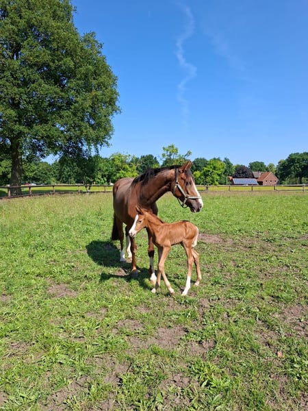 Hübsche, auffällige Jährlingsstute zu verkaufen Zum Verkauf steht eine typvolle Jährlingsstute mit der Abstammung: Entertainer Number One x Diamond Deluxe Die Stute besitzt ein ausdrucksstarkes, korrektes Gebäude mit harmonischen Bewegungen und guten Grundgangarten. Sie hat einen neugierigen Charakter und wächst artgerecht im Herdenverband auf. Bei Interesse oder weiteren Fragen gerne melden.