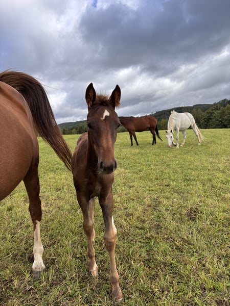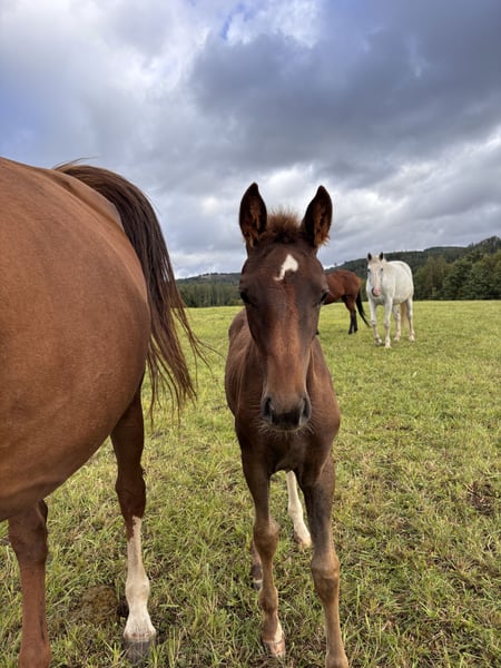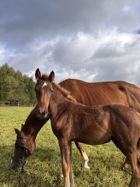 Bailey ist ein ausdrucksstarkes, zierliches Stutfohlen, geboren am 28.05., das nun als Absetzer ein neues Zuhause sucht. Sie stammt aus einer hochwertigen Anpaarung: Belissimo (Mutterlinie) x Brilliant (Landgestüt Warendorf) – eine Kombination, die sowohl für die sportliche Zukunft als auch für die Zucht vielversprechend ist. Dieses edle dunkelfuchsfarbene Fohlen überzeugt durch ihr korrektes Fundament, ihre elegante Erscheinung und ihren charmanten Charakter. Bailey zeigt sich neugierig, menschenbezogen und bewegt sich leichtfüßig mit viel Ausdruck. ✨ Eckdaten: • Geboren: 28.05. • Abstammung: Belissimo x Brilliant (Landgestüt Warendorf) • Typ: Zierlich, elegant, mit viel Ausdruck • Farbe: Dunkelfuchs • Geeignet für: Sport & Zucht • Transport: deutschlandweit möglich Bailey bringt beste Voraussetzungen mit, um sich zu einer tollen Partnerin im Sport oder einer Bereicherung für die Zucht zu entwickeln. Auf den letzen Bildern ist die Mutter zu sehen.