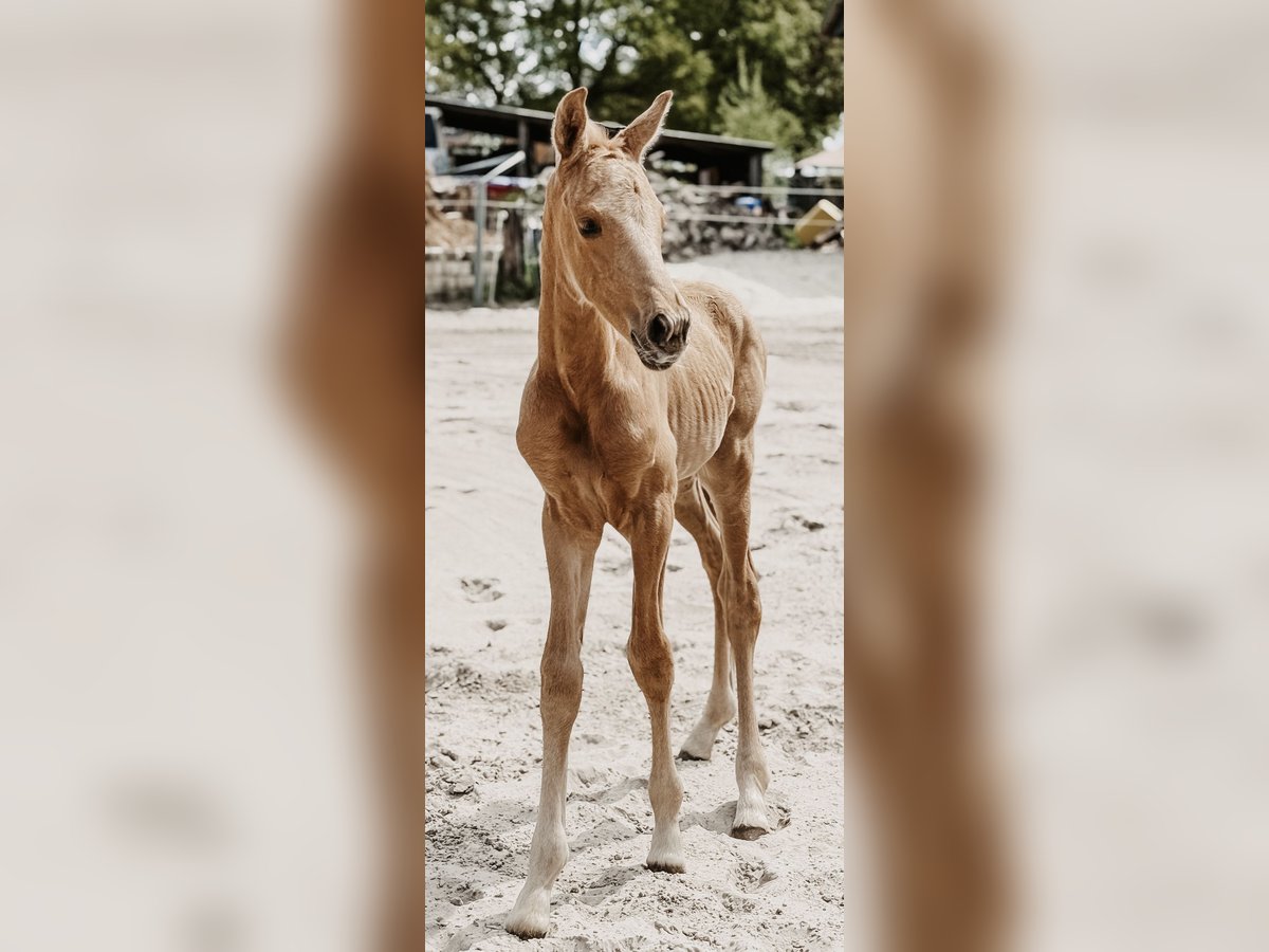 Hermosa potra palomino de gran tamaño, hija de Qaside MD x Damon Hill x Romantic Boy, en venta. Fue subcampeona en la exposición de potros en Hinte. Nacida el 30 de abril de 2025. ¡Solo en manos comprobadamente responsables! Ubicación: 26632 Ihlow
