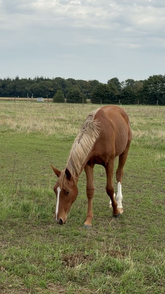 Zum Verkauf steht eine zweijährige, dressurgezogenene Stute aus dem Westfälischen Pferdestammbuch mit gültigem Pass. Die Stute steht aktuell in einer altersgerechten Aufzucht in einer Stutenherde. Dort zeigt sie sich sozial, ausgeglichen und unkompliziert – weder ranghoch noch rangniedrig, sondern gut integriert und umgänglich. Im täglichen Umgang ist sie sehr brav und menschenbezogen: • problemloses Halftern, • gibt artig die Hufe, • überall anfassbar (Ohren, Schweif etc.), • ruhig, verschmust und gelassen, • sehr angenehm im Kontakt, auch in neuen Situationen. Sie ist ein Dunkelfuchs mit aktuell heller Mähne, voraussichtlich dauerhaft in dieser besonderen und eher seltenen Farbgebung. Die Stute wurde altersgerecht aufgezogen und bringt beste Voraussetzungen für eine weitere Ausbildung im Dressurbereich mit. Sie eignet sich hervorragend als zukünftiges Amateur- oder Nachwuchspferd und wird einmal ein echtes Traumpferd für Reiterinnen und Reiter, die Wert auf ein unkompliziertes, liebes Wesen legen. Abgabe erfolgt aus privaten Gründen und ausschließlich in beste Hände.