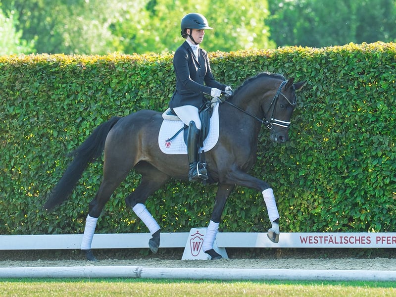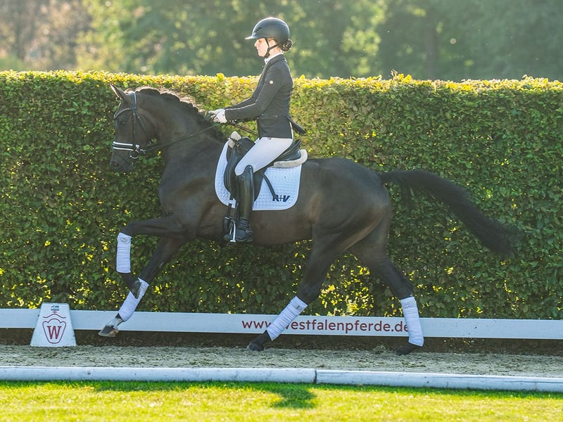 Im Westfälischen Pferdezentrum angeritten, entwickelt sich mit Fair Play ein sehr rittiges Dressurpferd. Mit viel Bewegungsdynamik ausgestattet, empfiehlt sich diese elegante Stute als tolles Damen- oder Jugendreitpferd. 2. Generation Sportpferde: Deauville S 3 v. Dante Weltino (DR PSG/Inter I erfolgr.), Raffaello Santi S v. Rock Forever I (DR S erfolgr.), Ricardo S 3 v. Rock Forever I (DR M erfolgr.) 3. Generation Sportpferde: Rosenrot T v. Royal Classic (DR S erfolgr.), Dance Monkey 9 v. Dancier (DR Inter I/A erfolgr.), Fiesta Mexicana T v. Follow Me (DR M erfolgr.) Stutenstamm gekörte Hengste: Libori v. L' Espoir, Symphonic v. Sir Heinrich (Prämienhengst Körung MS'14), Riccione v. Regazzoni (DR int. PSG/Inter I erfolgr.), Laurent v. Lauries Crusador xx, Mr. Bonjangles v. Benetton Dream, Wonderful v. Weltmeyer Sportpferde: u.a. Federweißer v. Wendig (SPR int. 1,40 m erfolgr.), Fizz Caraldo v. Forrest xx (DR S erfolgr.), Lausbub 267 v. Lemon Park (DR S erfolgr.), Frederico 39 v. Fürst Heinrich (DR PSG/Inter I erfolgr.), Sternenzauber v. Sir Donnerhall (DR S erfolgr.), Fidertraum 2 v. Fidertanz (DR S erfolgr.), DMJ Lagoni v. Lauries Crusador xx (DR S erfolgr.), Horrido 27 v. His Highness (DR PSG/Inter I erfolgr./Emma Kanerva), Roi du Monde v. Rousseau (DR PSG/Inter I erfolgr.) Auktionspferde: Sinfonie v. Sir Heinrich (Spitzenpferd Westf. Elite-Auktion Okt.'19/130.000 €) Mutter: StPr Betty Barclay S ZL: 6/5 ZSP: 7.83 Turniererfolge: RPF: 1/4. Großmutter: StPr Fräulein Smilla ZSP: 8.17