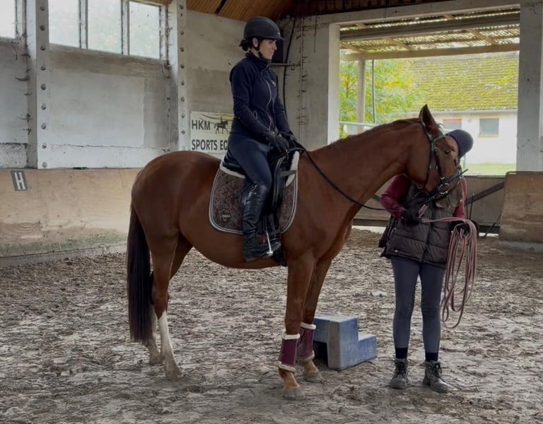 Zum Verkauf steht eine vielversprechende, dreijährige Stute von Depeche Mode aus einer Rockwell-Mutter. Diese junge Stute überzeugt besonders durch ihr charmantes Wesen und ihre Lernbereitschaft. Sie überzeugt nicht nur optisch, sondern vor allem durch ihren Charakter. Dabei ist stets freundlich, nervenstark und neugierig. Sie besitzt drei sehr gute Grundgangarten. Mit aktuell ca. 1,60 m Stockmaß steht sie noch voll in der Entwicklung. Ihr korrekter Körperbau und das energisch abfußende Hinterbein bilden eine solide Basis für den weiteren sportlichen Werdegang. Sie bringt alles mit, um ein toller Sportpartner zu werden: Vermögen, eine gute Abstammung und ein gutes Interieur. Im täglichem Umgang ist sie sehr lieb, unkompliziert, klar im Kopf und absolut kinderfreundlich. Sie kennt das putzen, alle 4 Hufe heben und die Arbeit an der Longe. „Schnatti“ wird gerade behutsam Angeritten. Sie lernt sehr schnell, ist dabei fleißig und entspannt. Sie ist herdenverträglich und lebt derzeit mit Stuten und Wallachen zusammen. Natürlich wurde sie regelmäßig geimpft und entwurmt und steht absolut brav beim Hufschmied (Barhufer). "Schnattis" Vater Depeche Mode ist ein Bewegungspferd, das mit einem raumgreifenden Ablauf aufzufallen weiß. Dies präsentiert er u. a. eindrucksvoll als Aktionstraber bei den Hengstparaden. Darüber hinaus zeigt sich der Damon Hill–Sohn stets leistungsbereit und charakterstark. Ein herausragendes Ergebnis erzielte Depeche Mode bei seinem 70-Tage-Test in Neustadt (Dosse) 2010 mit einer dressurbetonten Endnote von 8,4 –dem zweitbesten Ergebnis der Prüfung. Dabei wurde er für seine Rittigkeit vom Fremdreiter mit einer 9,25 belohnt. Depeche Mode kann zahlreiche Nachkommen mit Erfolgen in Reitpferde- und Dressurprüfungen aufweisen. Preis: VB Standort: Schönwalde-Glien Kontakt: Antje Nitzschmann, 0170/48 12 889