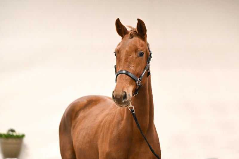 Vadina is a three-year-old, still raw mare who already clearly shows that she has inherited her father’s exceptional talent. Her harmoniously and correctly built body allows for powerful, expressive gaits, with a particularly impressive trot. She displays curiosity, a willing attitude, and a pleasant, people-oriented nature – a mare that immediately captures attention. Her pedigree is equally impressive: her sire, Vaderland, is an exceptional dressage stallion with top scores and international competition experience. In 2019, he completed the 14-day test in Adelheidsdorf with an outstanding dressage-focused score of 8.74, achieving the second-best dressage result, followed by a successful performance test in Verden in 2020. His canter and work ethic were both awarded 9.5, while his rideability earned him an incredible 9.75 from an independent rider. Under Dinja van Liere, he successfully competed up to CDI Prix St. Georges and Freestyle at the Dutch Masters, securing top placings right from the start. As a sire, Vaderland is equally impressive: his offspring have achieved top prices at auctions, excel on stallion licensing and competitions, and he was honored as VTV Stallion of the Year in 2024. The dam’s sire, Dimaggio, is internationally renowned for his outstanding dressage influence. He has produced numerous successful Grand Prix horses, Bundeschampions, and top stallions that shine at both national and international competitions. The dam’s grandsire, Stedinger, ranks among the top breeding stallions worldwide. He has sired over 40 licensed sons, 57 state premium mares, and offspring excelling in dressage, jumping, and eventing. Stedinger was crowned Champion at the Oldenburg Stallion Licensing and Reserve Champion of the Main Premium, completed his 70-day test with distinction, and competed successfully up to the highest dressage levels. Vadina combines everything a young sport horse should possess: harmonious gaits, a strong willingness to learn, remarkable talent, and an outstanding pedigree. A mare that impresses today and has the potential to shine in sport tomorrow.