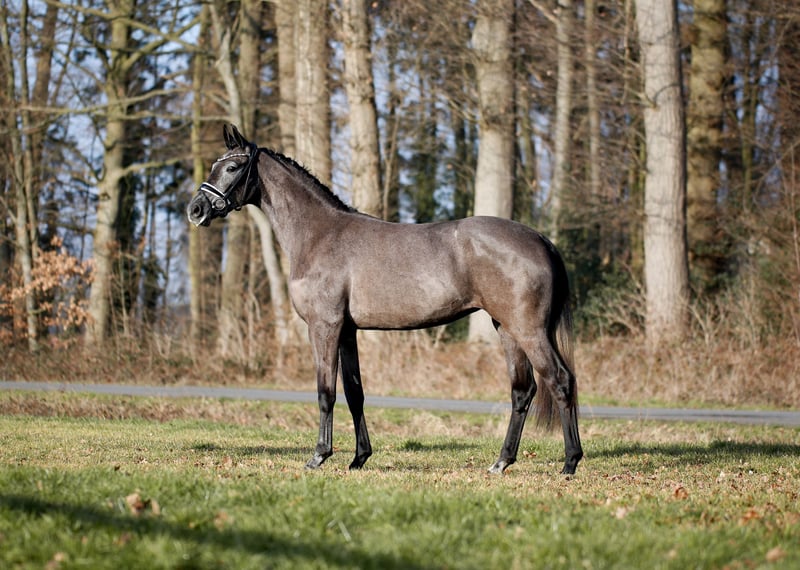 Traumhafte Rappschimmelstute mit dem Prädikat: Wertvoll!! Eine noch sehr junge , hochintelligente Dressurpüppi, die sich bereits mit nur sehr geringer Arbeit bestens präsentiert und auf Anhieb weiss, was Ihre Menschen möchten. Naturgegebene, ungezwungene Rittigkeit bei hervorragender Bewegungsqualität und bespielloser Konzentration nebst Lernfähigkeit. Eine ganz besondere, hochwertige Pferdepersönlichkeit für den begeisterten Liebhaber und Förderer. Noch voll in der Entwicklung stehendes Damenpferd aus pferdegerechter, grundsolider Aufzucht. Gute Röntgenbilder vorhanden.Auf Wunsch gerne zum Versand.