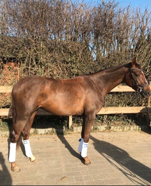 Jumente bai three ans, de couleur baie foncée, issue directement de l’éleveur. Elle est par Flashdancer, de mère Licotus, Rubinstein. Tous les descendants de cette mère réussissent en dressage. Elle a été montée et se montre très prometteuse, elle est facile à manipuler, non peureuse et possède un tempérament doux. Elle sort en balade et en pâture, et est compatible avec d’autres chevaux. Taille au garrot : 1,73 m. Elle sera confiée uniquement à des propriétaires expérimentés et de confiance.