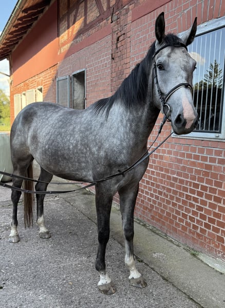 • 3-letnia klacz westfalska maści siwej • po Cornet Obolensky / Quidam de Revel • z powodu swojego rozwoju (1,74 m) obecnie jeszcze na pastwisku • zaznajomiona z wędzidłem, siodłem, ciężarem jeźdźca, kowalem, przyczepą • gotowa do dalszego szkolenia • wyposażona w dobre podstawowe chody i duże możliwości skokowe