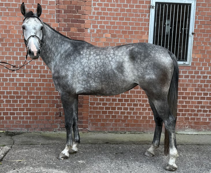 • 3-jährige Westfalen-Schimmelstute • von Cornet Obolensky / Quidam de Revel • aufgrund ihrer Entwicklung (1,74 m) derzeit noch auf Koppel • im Umgang mit Trense, Sattel, Reitergewicht, Schmied, Anhänger vertraut • zur weiteren Ausbildung bereit • mit guten Grundgangarten und großem Springvermögen ausgestattet
