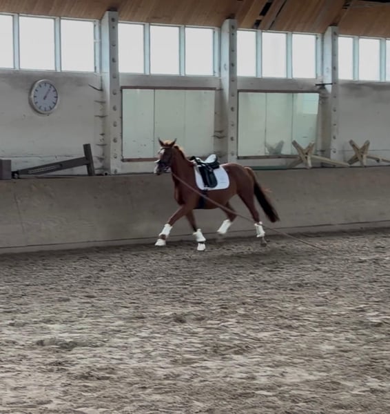 For sale is a promising three-year-old mare by Depeche Mode out of a Rockwell dam. This young mare impresses especially with her charming personality and her willingness to learn. She captivates not only visually but also through her temperament. She is always friendly, resilient, and curious. She has three very good basic gaits. Currently standing at approximately 1.60 meters at the withers, she is still fully in development. Her correct conformation and her energetic, ground-covering hind leg provide a solid foundation for her further sporting career. She has everything needed to become an excellent sport partner: talent, a good pedigree, and a good interior. In daily handling, she is very sweet, uncomplicated, clear-minded, and absolutely child-friendly. She is familiar with grooming, picking up all four hooves, and lunging work. "Schnatti" is currently being gently backed. She learns very quickly, is diligent, and relaxed. She is herd-friendly and currently lives with mares and geldings. Naturally, she has been regularly vaccinated, dewormed, and stands quietly for the farrier (barefoot). Schnatti’s sire, Depeche Mode, is a movement-oriented horse known for his expressive, ground-covering gait. He impresses notably as an action-type stallion at stallion parades. Furthermore, the Damon Hill son consistently demonstrates willingness and strong character. Depeche Mode achieved an outstanding result at his 70-day test in Neustadt (Dosse) in 2010, with a dressage-oriented final score of 8.4 – the second-best result of the test. His rider rated his rideability with a 9.25. Depeche Mode has numerous offspring with success in riding horse and dressage competitions. Price: Negotiable Location: Schönwalde-Glien Contact: Antje Nitzschmann, 0170/48 12 889