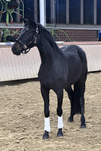 Elegante 4-jährige Stute mit sehr guten Grundgangarten und freundlichem, menschenbezogenem Charakter. Züchter-TÜV oBB inkl. Rücken, aus hochwertiger Dressurabstammung. Qualität für wenig Geld – ideal für Schnellentschlossene. Stockmaß ca. 1,60 m. Weitere Informationen gerne auf Anfrage.