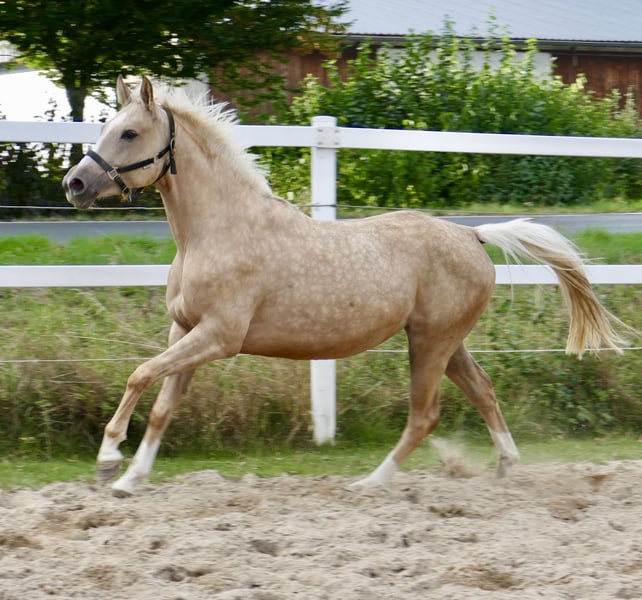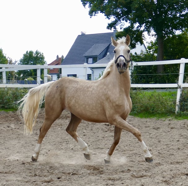 Are you looking for a truly special mare? Ismo's Sunrise A – a 3-year-old dream foal in Palomino, with an approximate height of 16.2 hh! This young lady, with Westphalian pedigree by Ismo out of Magic Memphis x Rebel Z III, captivates with her presence and outstanding potential. A mare like a painting, open to all disciplines of riding! Ismo combines top-class show jumping bloodlines from Ilasso x First Gotthard x Zeus. Her stunning color is inherited from the beautiful Cremello Magic Memphis. Rebel Z III is full brother to Ratina Z, one of the most successful championship jumpers. She is an ambitious horse, learns quickly, and brings great joy.