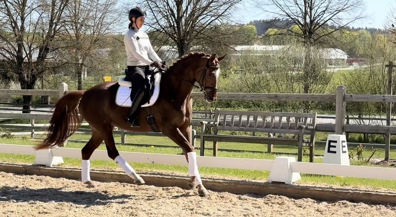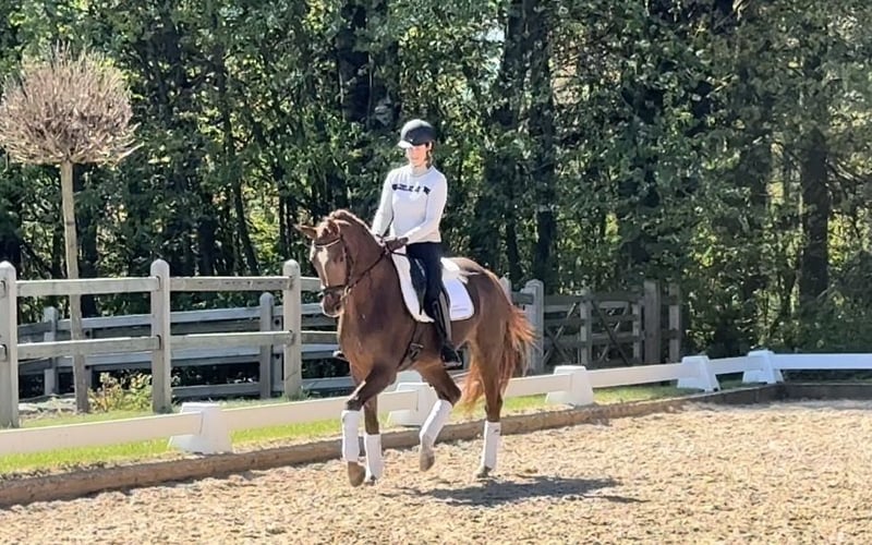 Bonnie ist eine sehr lieb Stute mit bestem Charakter. Sie ist fein und einfach in der Anlehnung und sehr schön zu reiten. Ihr Vater Bowmore war mehrfach Finalist beim Bundeschampionat und ist inzwischen in S-Dressuren erfolgreich. Anfrage bitte telefonisch unter 01757843709 (Walter Wadenspanner)