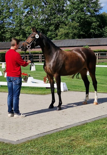 Zum Verkauf steht eine talentierte Westfalen-Stute, geboren im Jahr 2020. Diese elegante Braune hat ein Stockmaß von 167 cm und überzeugt durch ihre ansprechende Statur und ihr freundliches Wesen. Die Stute zeigt großes Potenzial im Springen und hat bereits erste Erfahrungen in diesem Bereich gesammelt. Sie ist gut ausgebildet und zeigt sich lernwillig und kooperativ unter dem Sattel. Ihr ausgeglichenes Temperament macht sie sowohl für erfahrene Reiter als auch für ambitionierte Reiteranfänger geeignet. Sie kennt es auch alleine oder in der Gruppe ausreiten zu gehen. Sie ist gesund, regelmäßig geimpft und besitzt einen aktuellen Pass. Sie ist bei uns geboren, lebt nachts in der Box und über Tag steht sie im Herdenverband auf der Wiese. Züchter-TÜV ist vorhanden und ohne besonderen Befund Wenn Sie auf der Suche nach einer talentierten und liebevollen Partnerin für den Reitsport sind, dann ist diese Westfalen-Stute genau das Richtige für Sie! Bei Interesse oder weiteren Fragen freue ich mich über Ihre Nachricht.