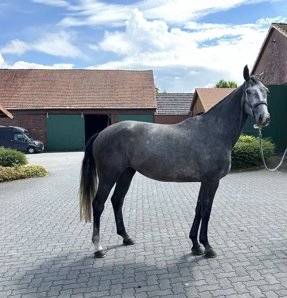 Excellent temperament combines trainability, sporting talent, and breeding value from a proven, high-performance family, making her ideal for Children and Ladies. Significantly Reduced – Winter Deal for quick decision-makers! Taurus White Moon descends from the Westphalian premium stallion Taurus (Toto Jr. x Apache), with her dam line tracing back to Hotline x Caprimond. Exceptional bloodlines & a proven family Her mother (Hotline × Caprimond) has several siblings competing successfully at S and Grand Prix levels, including full sister to Halekyn (DR/S) and St.Pr.St. Sacro Santa (ridden by Sahar Daniel Hirosh, USA). Sacro Santa’s son, Classy Sinclair, has competed successfully at CDI 3* level, and another brother of her dam is Schwarzer Mond, the first Grand Prix horse of Yara Reichert. The mare already has outstanding siblings in sport: A licensed brother, Blind Date AT, bred by Adolf Schurf of Belissimo, placed up to M** in Germany and has been competing since 2022 with a FEI Children rider. In 2025, they represented the Canadian team at the North American Youth Championships – Children – Preliminary Test 2. Gwendolyn Joinson – Blind Date AT – 71.560% (Canada). Children – Individual Test 6. Gwendolyn Joinson – Blind Date AT – 69.590% (Canada). A full sister, Foundation’s premium mare, owned by Matthieu Beckmann of “Hengststation Beckmann,” has also been successful. In 2025, another sister of Bach St.Pr.St. was also active in sport. Further offspring from her dam are still active in breeding. Trusted maternal line: Oldenburg Fekdgold line: 2nd dam: St.Pr.St. Coco Chanel (by Caprimond) – from this line come numerous S and Grand Prix horses, including: - Free Floating / Kirchhoff – Dressage S - Senta (Florestan I) – International Dressage S - Don Dulcino (Dream of Heidelberg I) – Dressage M - Leone (De Niro) – Jumping M - Donna Clara (Don Frederico) – Dressage S …and more – a proven line with highly talented sport horses! She is truly one of a kind: absolutely lovable, calm, and consistently gentle. Always well-behaved, very attentive, and eager to do everything right. Trained gently, correctly, and horse-friendly. Fully prepared for the upcoming competition season. She was deliberately trained slowly and gently to become a riding horse and is very easy to ride, sensitive to aids. After starting under saddle, she was given time to grow further, as she experienced a major growth spurt at 3.5 years, requiring a period of rest due to irritation. This shows that our horses primarily need time, which she was given. She is ready to compete in DRA tests in the upcoming season. She is used to full-day turnout and paddock, with stabling in the evening. She is herd-compatible, enjoys hacking out, loves ground work, knows the lunging ring, and transports confidently in a trailer or transporter, like a seasoned competition horse. Health: X-ray certificate from 2024 available. No allergies or eczema, vaccinated, dewormed, and recently checked by the dentist. Regularly attended by the farrier. Special features & note: Current riding videos are being produced; older videos from her break-in can be sent upon request. To avoid touristic riding, a fee of €35 will be charged for trial riding, which will be deducted from the purchase price. This mare is a very special personality and will only go to the best, most nurturing hands.